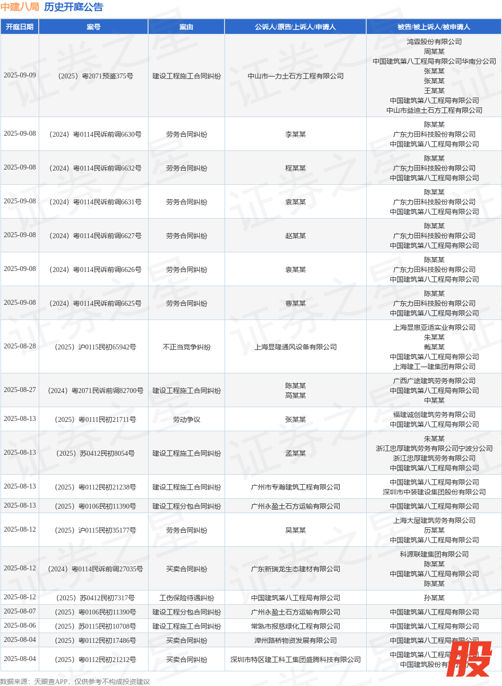 本站消息端盛康优配,根据天眼查APP显示,近日公布了一则中国建筑第八工程局有限公司作为被告/被上诉人的开庭公告端盛康优配,详细内容如下: