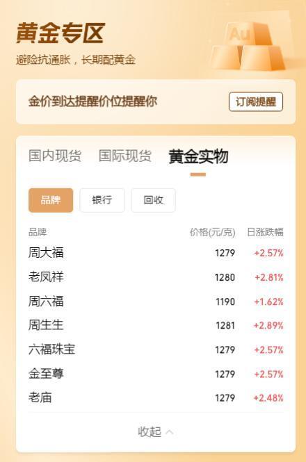 更早一点,今年2月,老铺黄金调价后产品价格约上涨5%至12%。